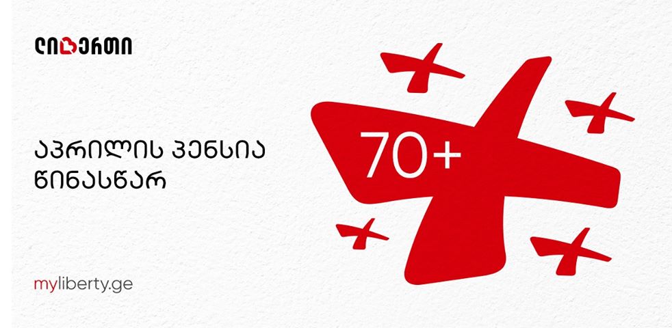 როგორც უკვე განვაცხადეთ, ლიბერთი ბანკმა მიიღო გადაწყვეტილება დასაკუთარი რესურსით,ვიწყებთ 100 მილიონ ლარიან პროგრამას – აპრილის თვის პენსიების წინასწარ ჩარიცხვის მიმართულებით. ეს პროგრამა შეეხება ყველაზე სარისკო ჯგუფში მოაზრებულ ადამიანებს, რომლებიც დღეს არიან 70 წლის და ზევით.