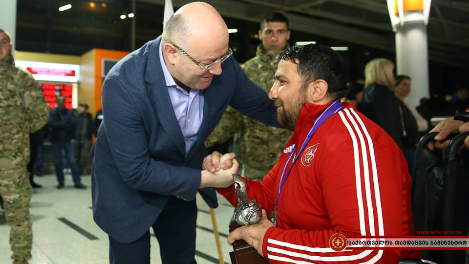 აშშ-ში, პენდელტონის საზღვაო ქვეითთა ბაზაზე გამართულ „საზღვაო ქვეითთა თამაშებიდან“ დაბრუნებული დაჭრილი და დაშავებული სამხედრო მოსამსახურეების გუნდი საქართველოში 38 მედლით დაბრუნდა. პარასპორტსმენებს თბილისის საერთაშორისო აეროპორტში თავდაცვის მინისტრი ლევან იზორია და თავდაცვის ძალების მეთაური, გენერალ-მაიორი ვლადიმერ ჩაჩიბაია დახვდნენ.