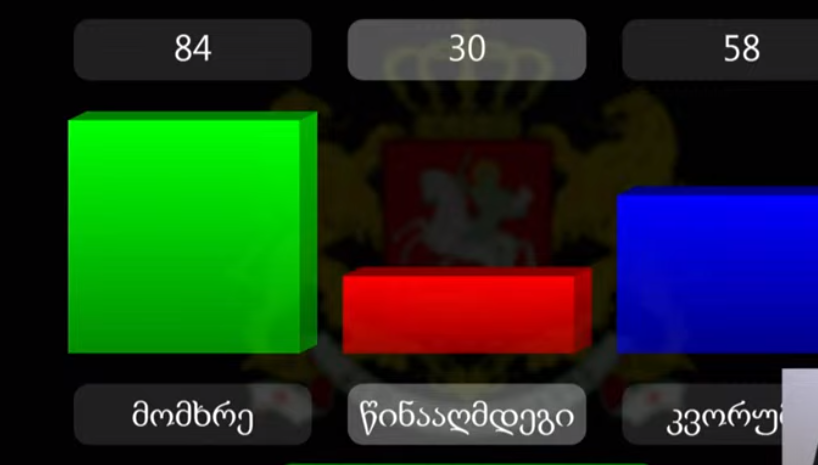 პარლამენტის დარბაზში რეგისტრაცია 116-მა დეპუტატმა გაიარა, კანონპროექტს მხარი 84-მა კანონმდებელმა დაუჭირა, წინააღმდეგი 30 დეპუტატი იყო. კენჭისყრას პლენარულ სხდომაზე პოლიტიკური გამოსვლები უძღოდა წინ.