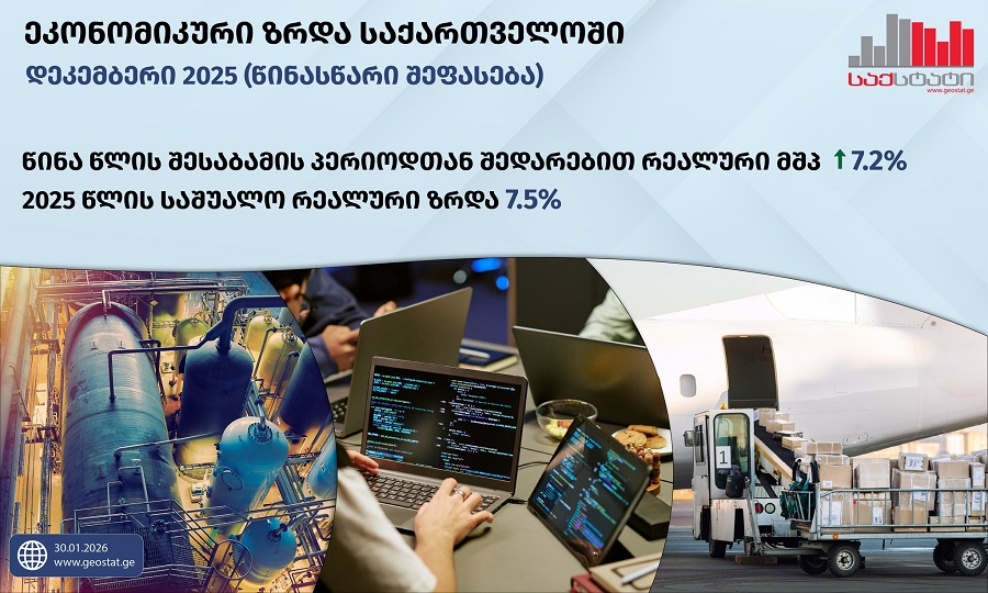 საქსტატის ცნობით, 2025 წლის დეკემბერში, წინა წლის შესაბამის პერიოდთან შედარებით, ზრდის მიმართულებით მნიშვნელოვანი წვლილი შეიტანა ისეთმა დარგებმა, როგორიცაა დამამუშავებელი მრეწველობა, ინფორმაცია და კომუნიკაცია, ტრანსპორტი და დასაწყობება, სასტუმროები და რესტორნები, ხოლო კლების ტენდენცია დაფიქსირდა მშენებლობის სექტორში.