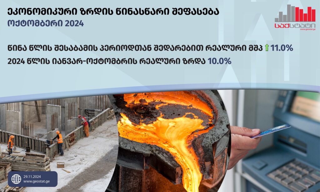 საქსტატის ცნობით, 2024 წლის ოქტომბერში, წინა წლის შესაბამის პერიოდთან შედარებით, ზრდის მიმართულებით მნიშვნელოვანი წვლილი შეიტანა ისეთმა დარგებმა, როგორიცაა მშენებლობა, დამამუშავებელი მრეწველობა, საფინანსო და სადაზღვეო საქმიანობები, ინფორმაცია და კომუნიკაცია, ტრანსპორტი და დასაწყობება, ვაჭრობა.