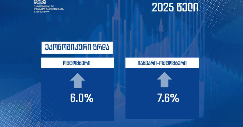 საქართველოში 2025 წლის იანვარი-ოქტომბრის საშუალო ეკონომიკური ზრდა 7.6%-ით განისაზღვრა