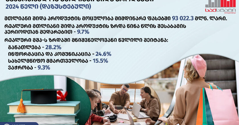 საქართველო საქსტატი: დაზუსტებული მონაცემებით, 2024 წელს საქართველოს ეკონომიკა 9.7 პროცენტით გაიზარდა November 14, 2025, 1:08 pmNovember 14, 2025