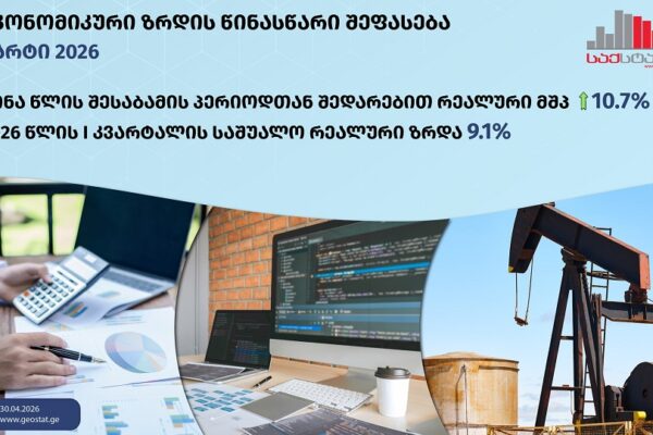სტატისტიკის ეროვნული სამსახურის წინასწარი შეფასებით, 2026 წლის მარტში წინა წლის შესაბამის პერიოდთან შედარებით, რეალური მთლიანი შიდა პროდუქტის ზრდამ…